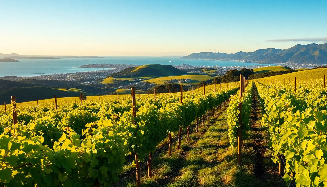 Auckland est la plus grande région viticole de Nouvelle-Zélande, située sur l'île du Nord. Elle bénéficie d'un climat océanique tempéré, idéal pour la culture de divers cépages. Les vignobles d'Auckland sont souvent plantés sur des collines surplombant la mer, offrant des conditions de drainage excellentes et une exposition au soleil optimale.