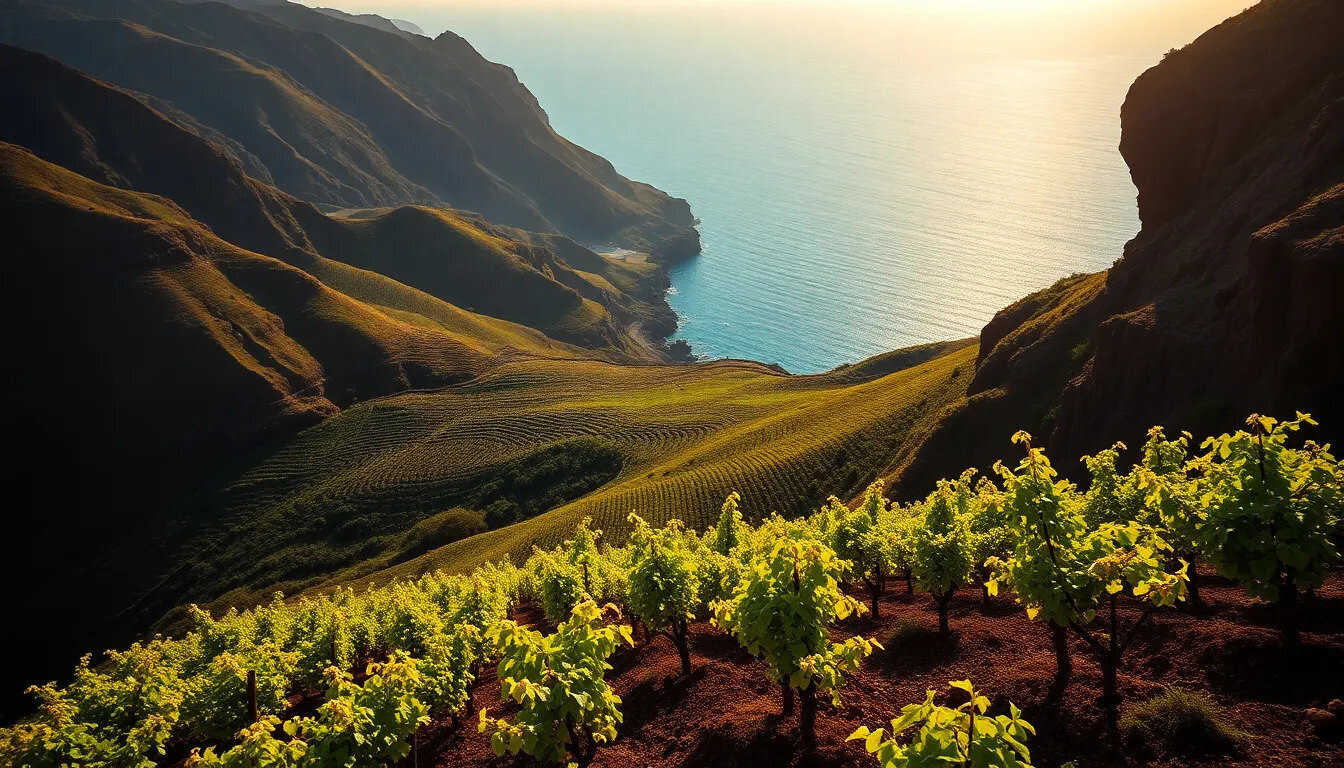 Madeira est une île portugaise située dans l'océan Atlantique, célèbre pour ses vins fortifiés. La région viticole de Madeira est connue pour ses conditions climatiques uniques, qui favorisent la production de vins aux arômes complexes et à la longévité exceptionnelle. Les pentes abruptes et les terrasses cultivées offrent un paysage viticole spectaculaire.
