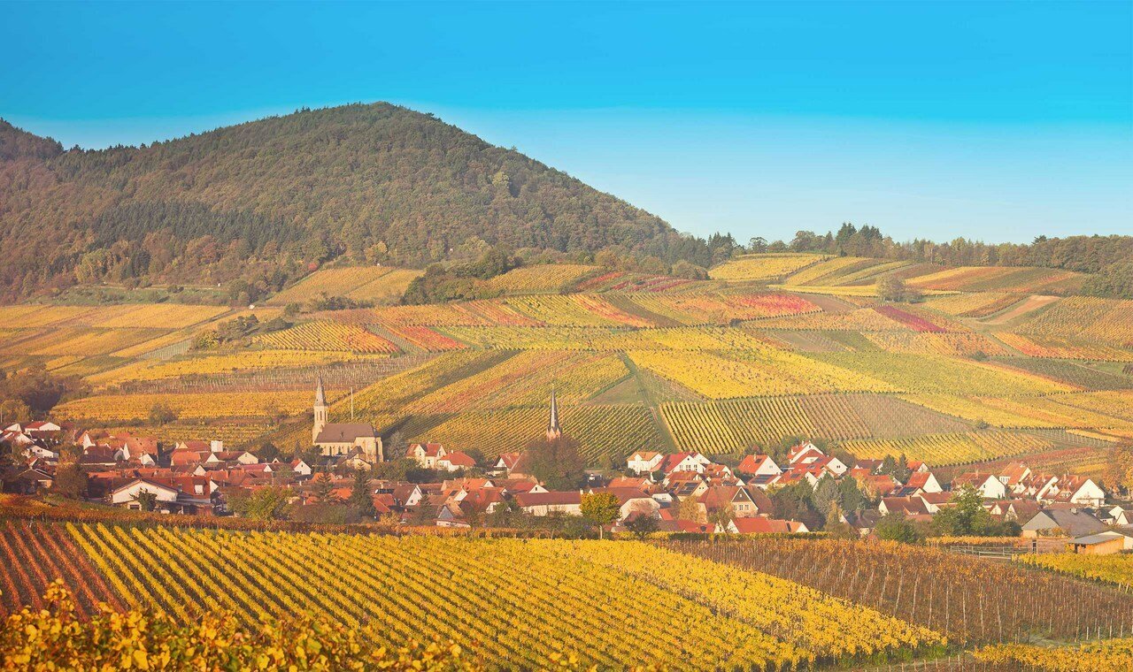 La région viticole de Pfalz, située dans le sud-ouest de l'Allemagne, est connue pour ses paysages pittoresques et ses vins de haute qualité. Elle bénéficie d'un climat tempéré, idéal pour la culture de la vigne, avec des influences méditerranéennes. Pfalz est la deuxième plus grande région viticole d'Allemagne, réputée pour ses vins blancs, en particulier le Riesling.